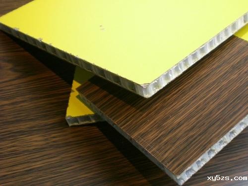 是两块铝板中间加蜂窝芯材粘接成的一种复合材料,根据幕墙的使用功能和耐久年限的要求可分别选用厚度为 蜂窝铝板10mm、12mm、15mm、20mm和25mm的蜂窝铝板,厚度为10mm的蜂窝铝板应由1mm的正面铝板和0.5-0.8mm厚的背面铝合金板及铝蜂窝粘接而成,厚度在10mm以上的蜂窝铝板,其正面及背面的铝合金板厚度均应为1mm,幕墙用蜂窝铝板的应为铝蜂窝,蜂窝的形状有正六角形、扁六角形、长方形、正方形、十字形、扁方形等,蜂窝芯材要经特殊处理,否则其强度低,寿命短,如对铝箔进行化学氧,其强度及耐蚀性能会有所增加。蜂窝芯材除铝箔外还有玻璃钢蜂窝和纸蜂窝,但实际中使用的不多。由于蜂窝铝板的造价很高,所以用量不大。